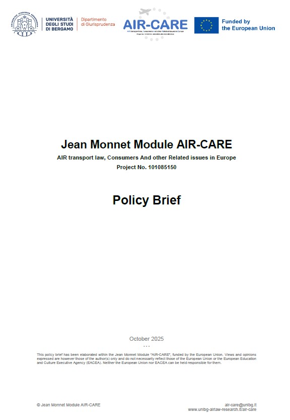 The present policy brief provides for a summary of selected topics addressed within the Jean Monnet Module AIR-CARE, that are of interests and at the core of debates and discussion especially at the EU legislative level, with the aim of highlighting critical issues and providing some recommendations.
