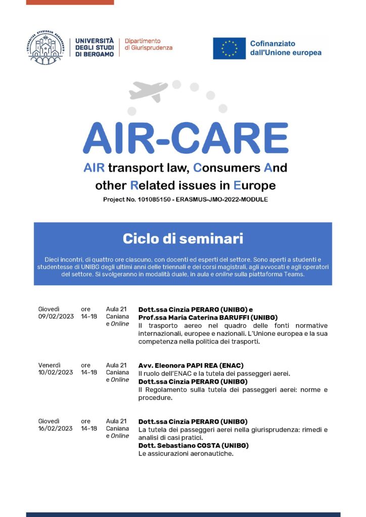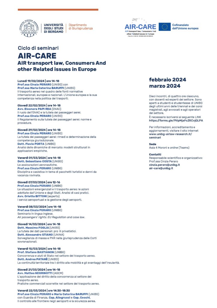 Responsabile del progetto Modulo Jean Monnet AIR-CARE: prof.ssa Cinzia Peraro (cinzia.peraro@unibg.it)